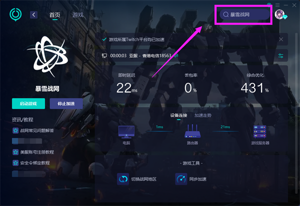 温馨提示:战网国际服下载和安装过程需要玩家全程开启加速器,否则会因为服务器连接中断,导致战网国际服安装失败。
