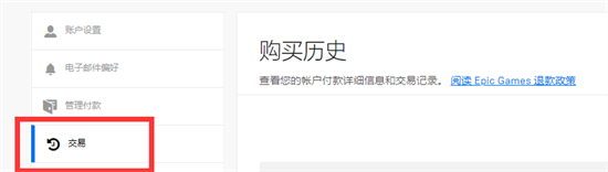 第四步:点击【账户】后会弹出epic官网,点击切换至【交易】专栏,在交易专栏中找到自己想要退款的游戏,点击游戏标题,并点击【退款】按钮,即可开启退款进程,退款会在1-3个工作日内完成。