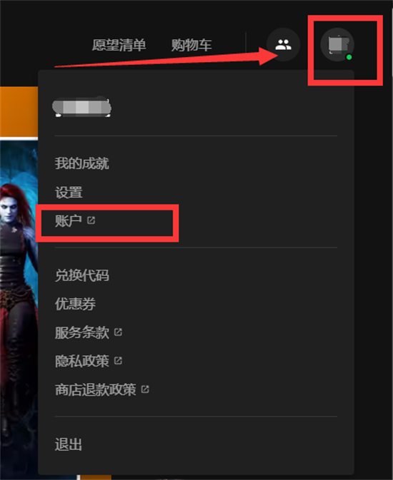 第三步:启动Epic平台,登录EPIC账户,点击右上角的个人头像并在下拉菜单中点击【账户】。