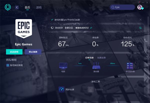 第二步:加速成功后,加速器会自动跳转到【Epic】平台加速界面。