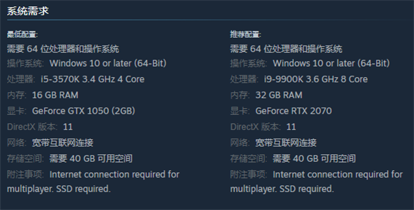 《幻兽帕鲁》对玩家电脑配置的要求不算低,配置较低的玩家,升级自身电脑配置至推荐配置以上,就可以解决游戏卡顿问题,流畅运行游戏了,官方配置要求如图所示。