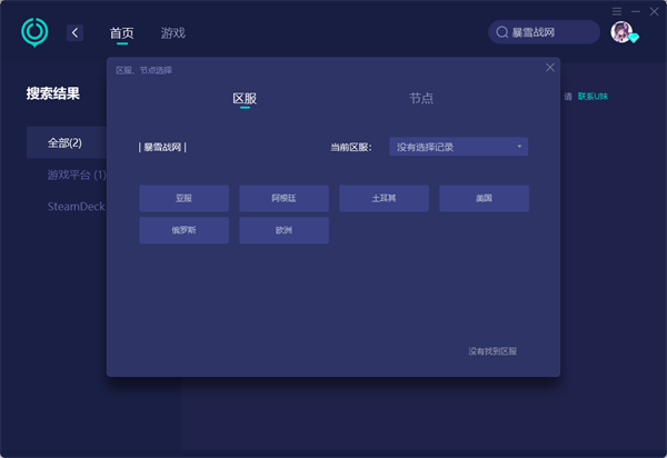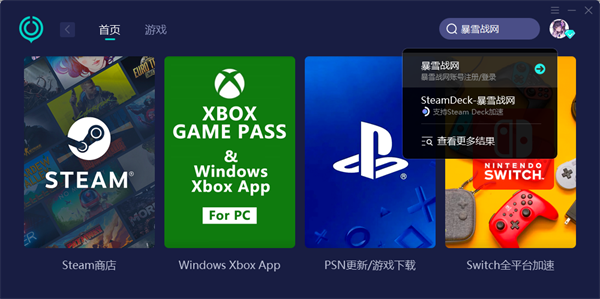 第二步:回到加速器界面,点击搜索栏,输入【暴雪战网】就可以找到战网国际服加速了。