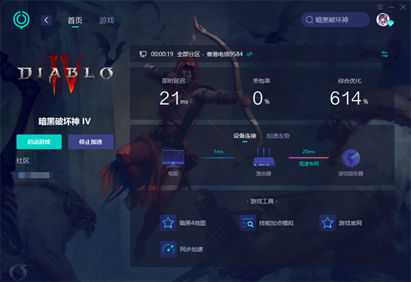 《暗黑破坏神4》目前还没有国服,玩家需要远距离连接海外服务器游玩,直连很容易会出现连接不稳定、掉线、闪退等问题,这种情况可以用UU加速器解决,打开UU加速器,搜索并加速《暗黑破坏神4》,就可以加强玩家网络与《暗黑破坏神4》游戏服务器的连接,解决掉线闪退等问题,还可以提高网络传输效率,降低游戏内的网络延迟。