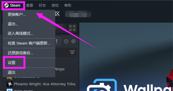 第四步:打开Steam,点击左上角的【Steam】图标,打开Steam设置。