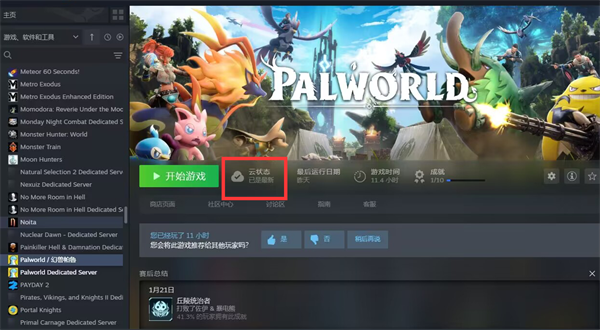 第六步:完成Steam云设置后,回到Steam库存界面,点击《幻兽帕鲁》游戏,这时候右侧就会出【Steam云同步】图标了。