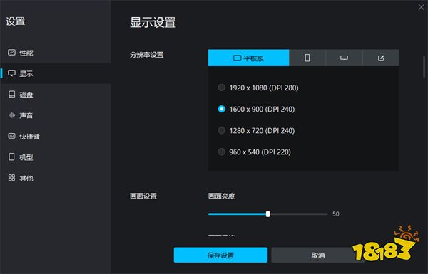 第二步:进入模拟器【设置中心】,将模拟器分辨率调整为1600*900。