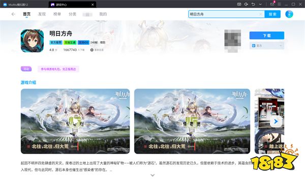 比较推荐用MuMu模拟器12,MuMu模拟器12和MAA小助手连接比较稳定,并且模拟器本身性能比较高,对游戏的适配做的也非常好,不容易出现游戏闪退、卡顿、导致小助手运行错误的情况,且安卓与iOS双端可用,具体的速刷方法如下。