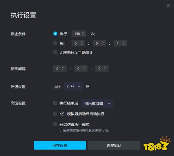 第四步:导入方案后,点击齿轮按钮,进行执行设置,预计搬空商店总计需要执行158次,玩家可以根据自身情况输入执行次数。