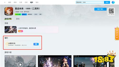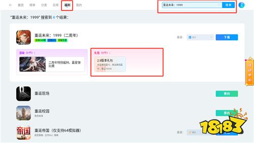2、进入福利中心界面后,若主页直接展示有《重返未来:1999》相关福利板块,点击进入即可;若主页未显示,可在右上角搜索框输入 “重返未来:1999”,搜索并进入游戏福利页面