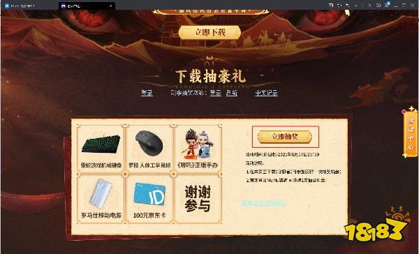 2、进入活动页面点击立即下载,即可获得抽奖机会,点击立即抽奖有机会赢键鼠、手办套装。
