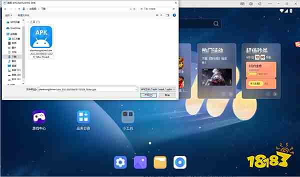 方法二:如果游戏中心没有找到需要的应用,可以通过apk安装,将安装包拖动到模拟器桌面即可进行安装操作。
