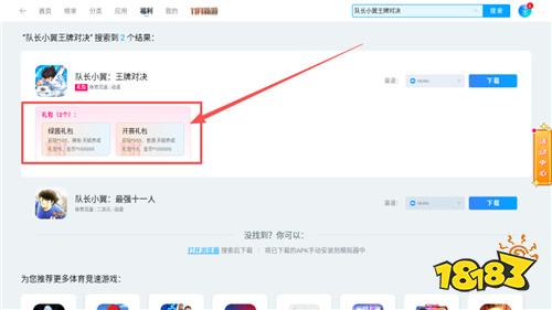 2、进入福利中心界面后,若主页直接展示有《队长小翼:王牌对决》相关福利板块,点击进入即可;若主页未显示,可在右上角搜索框输入 “队长小翼:王牌对决”,搜索并进入游戏福利页面
