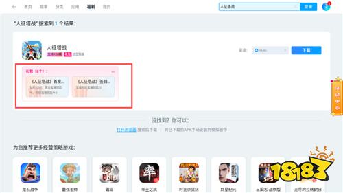 2、进入福利中心界面后,若主页直接展示有《人征塔战》相关福利板块,点击进入即可;若主页未显示,可在右上角搜索框输入 “人征塔战”,搜索并进入游戏福利页面