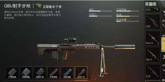 QBU、Mili14二者均属于5.56mm子弹,半自动步枪,后坐力相对教小,综合性较好。但是后者缺点枪声比较大,位置极容易暴露;