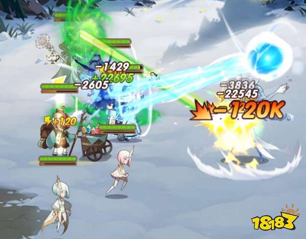 漫天飞雪:叠加一层狂暴等级后,将战场变成飞雪,敌人无法恢复生命值并造成击退效果。