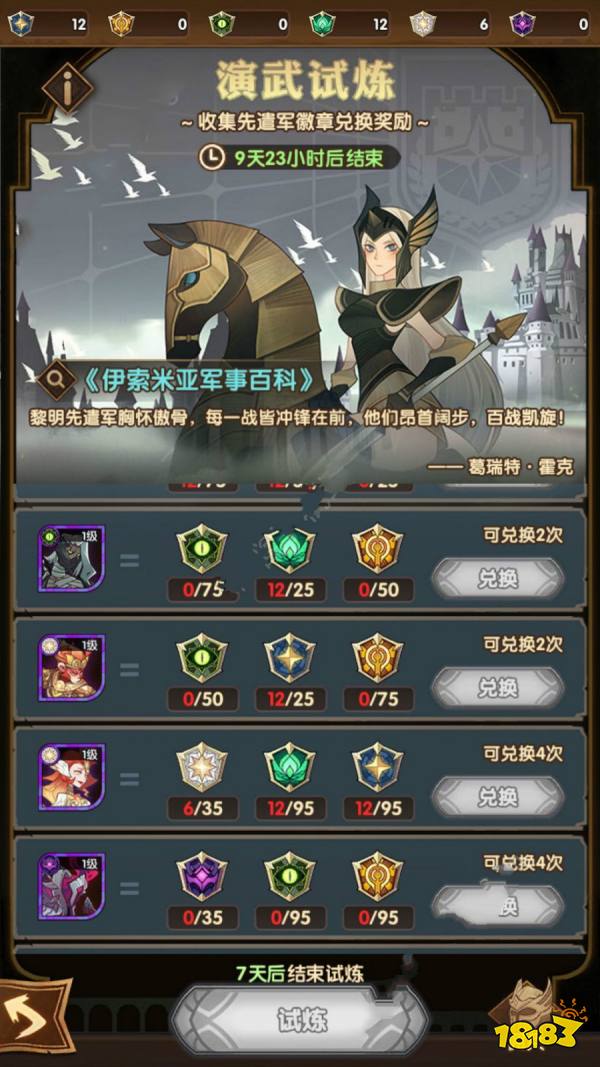 3、专武建议顺序为商人10-女妖10-商人20,多的紫色给光盾,多的金色给女妖。