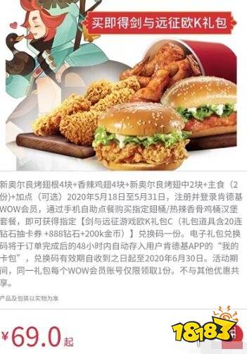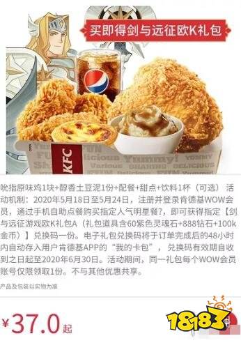 ①这次不仅有AFK礼包,套餐也给了我们很多选择,37元价位的,就给了4种套餐可供选择。小编这边的建议是恰奥尔良鸡腿堡套餐或者土豆泥原味鸡套餐。