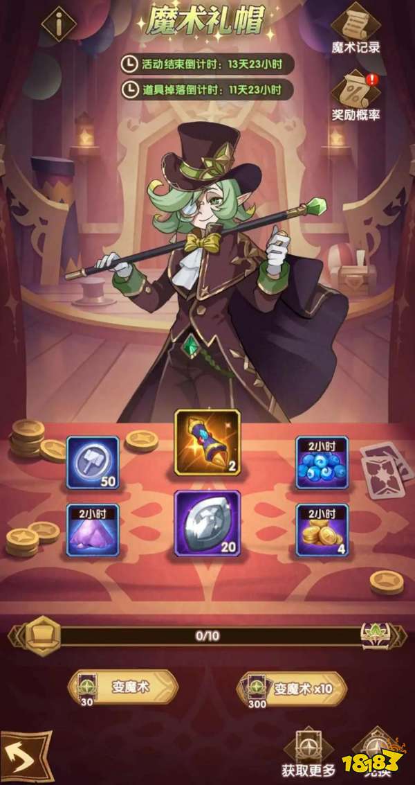 2、玩家在魔术屋中可以使用魔术券获得随机奖励。