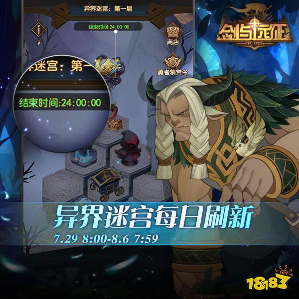 亲爱的冒险者:异界迷宫每日刷新活动开启!《剑与远征》中异界迷宫将每日刷新,冒险者们可以尽情在迷宫中战斗,获得丰厚奖励!还请各位千万不要错过这个获得大量奖励的绝佳机会!