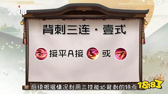 1.我们的基础连招模板就是位移接普攻再接一个小技能,打出单套爆发,后续根据情况利用三技能必背刺的特点灵活搭配小技能即可。此乃背刺三连壹式,简单粗暴。