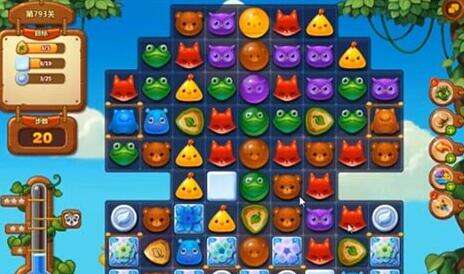 首先消除最上面的动物,这样可以消除最上面的雪块,雪块消除之后关卡的空间就是比较大的,我们就可以利用空间来不断地消除过关了。在消除的时候,我们还需要注意到周边的魔法石与独眼仔,尽量的激活魔法石,让他们帮助我们快速的消除过关。
