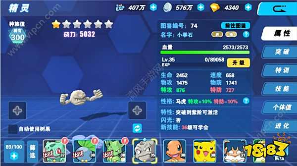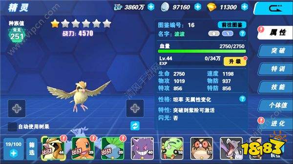推荐原因:妙蛙种子虽然后期强大,但是前期打虫属性的精灵伤害偏低!所以强烈推荐波波给玩家,飞行属性能克制虫属性,在前期用来补足妙蛙种子的攻击短板是非常不错的。