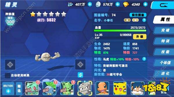 小拳石属性:岩石/地面。捕捉地点:月见山、初级狩猎场、打败岩系馆主小刚后获得。