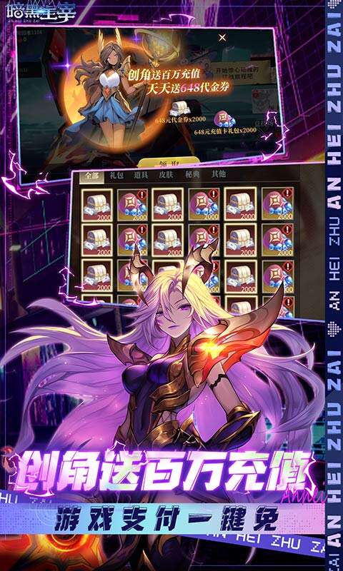 1、★免费充值:创角送百万充值卡,天天送6480免单支付安心玩! 2、★充级豪礼:升级送10万元充值红包,畅玩体验! 3、★送全英雄:登陆免费送全英雄,体验各种玩法! 4、★超低折扣:所有充值真实0.1折!