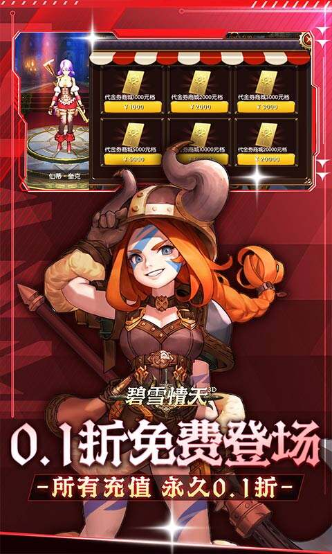 1、免费1000元:签到+在线永久每日免费送1000元代金券! 2、真实永久0.1折:游戏内所有充值全部真实永久0.1折! 3、免费创角福利:送传说之翼/夏日阳光武器/时装,钻石*8888! 4、免费0.1折商城:绝版逆天道具统统只要0.1折任意买!