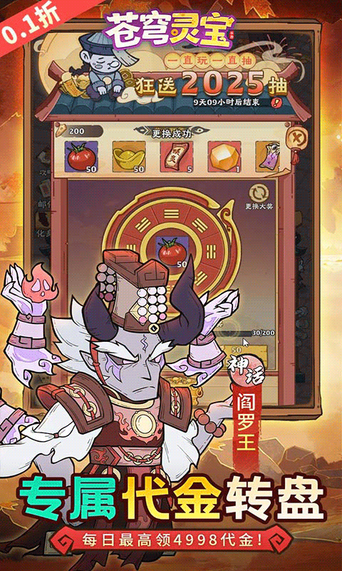 1、0.1折全新英叔抓鬼开箱,上线赠送1000代金券(可囤) 2、全新福利系统,福利升级,最高可每日领4800代金券 3、全新代金周卡月卡,平台648代金券免费激活,激活每日可领最高可220代金券 4、金券转盘,可以每天免费抽代金券,最高可获得4998代金券 5、每日签到、邀请好友、代金膨胀、代金券周卡月卡可免费无上限活动金券