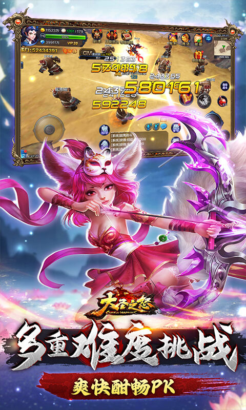 【大圣之怒】:全自由3D黑悟空西游,创新西游后传,揭秘千年阴谋!各种耳熟能详的神将和神兵,激发出你最深处的西游记忆!真实强劲打击,职业任意更换,野外自由PK,畅爽连招,十八般武器一键切换,让你体验畅快的战斗。全新国战玩法,千人同屏多元特色。多重难度挑战,再续九九之难,一起齐心助大圣,共战救三界。