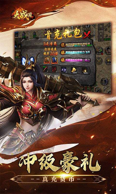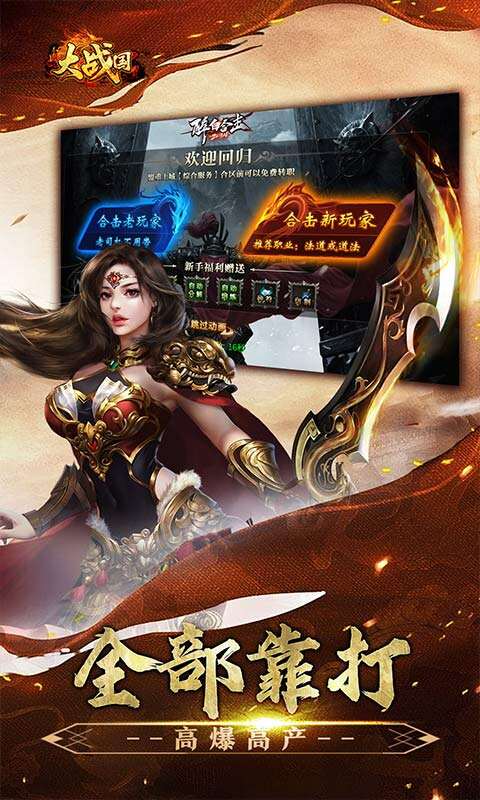 《大战国》是一款为玩家匠心定制的高端合击版本,装备、元宝、灵符高产高爆!新人上线根据任务快速提升,每个新区均有20W冲击豪礼真充货币!花时间也能顺利玩通关,赞助可嫖,组合合击适用各种不同场所!超多福利,生态大服,安全挂机24H开放,散人福利,免费会员,白嫖到底!
