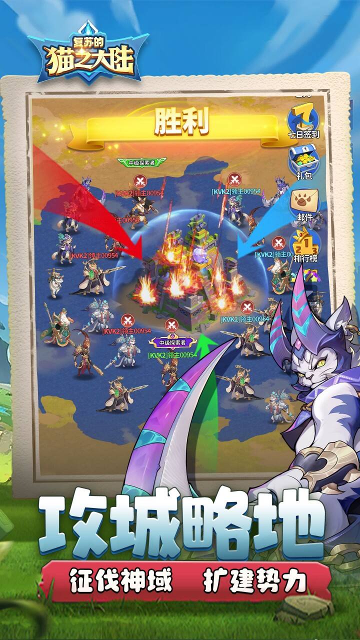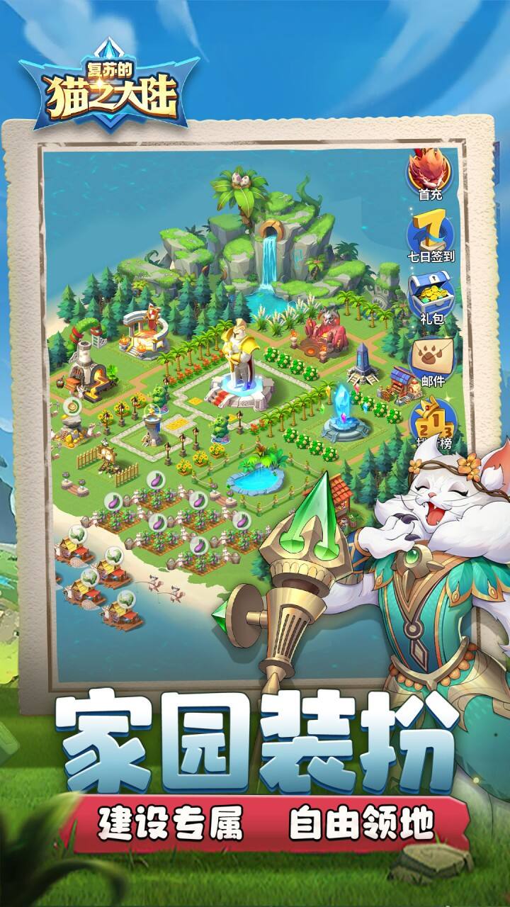 《复苏的猫之大陆》充值比例1元:10游戏货币,带你穿越到神秘的盖亚大陆,开启一段轻松的放置冒险。猫族遇难 少主复仇,身为猫族领主,父亲死在叔叔黑巫师的魔法下,侍卫们带你逃往静谧岛屿,你要如何带领你的子民复仇?家园建设 从零开始,种植粮食,钓鱼伐木,收菜做饭,驱逐外敌。管理好你的子民,建设好你的岛屿,解锁各种神秘的古代遗迹。记住,作为执政官,繁荣的家园是你远征最有力的后盾!驱除迷雾 唤醒大陆,黑巫师可不会让你轻松得逞!带领你的猫族英雄小队,踏上复仇之旅,不断击败拦路的黑暗爪牙,解锁各种神秘事件和奇遇宝箱,争夺沿路的村庄和资源点。史诗英雄 为你所用,风火水土,光暗交织。数十位猫族传奇英雄为你助阵。寻求最佳的阵容搭配,打造最强神兵,能帮助你无往不利。
