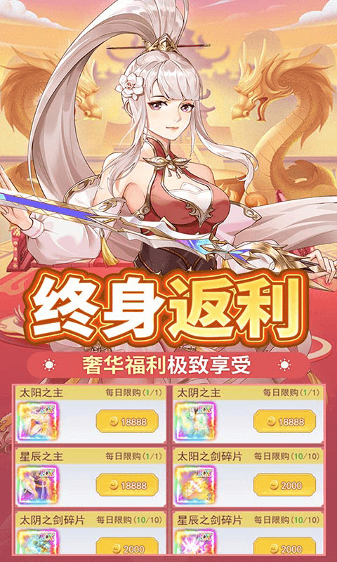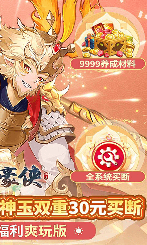 1、0.1折无限代金外加无限仙玉版,进游即送999999999超级仙玉,日卡买断999999999+代金直接爽玩 2、进游狂送全系统材料9999+,附带百抽代金转盘 3、超值买断系统重磅升级,幻化、道具、货币统统低价买断 4、全新系统零氪开放,炫酷套装轻松获取,神装神宠极速养成