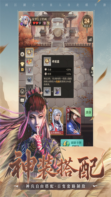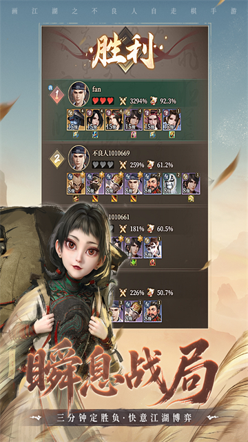 《画江湖之杯莫停H5》是一款以经典国漫IP【画江湖之不良人】为题材,以“自走棋玩法+策略搭配+3分钟快速竞技”为体验核心的武侠自走棋手游;游戏通过深度阵容构建、实时PVP对抗及持续赛季更新,在低门槛框架下提供硬核策略体验。其特色在于将不良人经典角色的技能和形象复刻,将自走棋的经济运营、羁绊联动与动态战场结合,辅以个性化养成,既能满足IP粉丝的情怀需求,又适合追求策略性与竞技感的玩家。