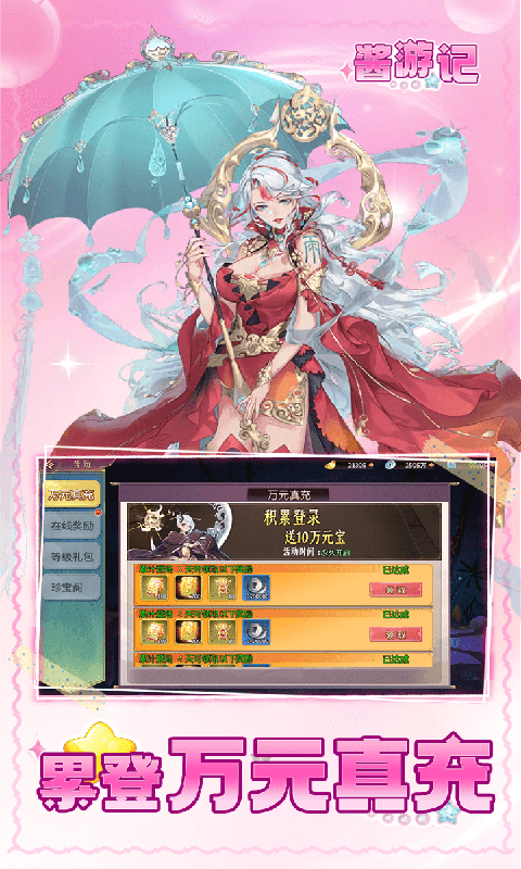 全新卡牌《酱游记》签到代金券版本,进游即送1288代金券,赤金神将自选、紫金神将自选,百连抽。签到天天送288代金券,累计签到再送1288代金券,累计登录送万元真充卡+海量代金券,养老打金不二之选。