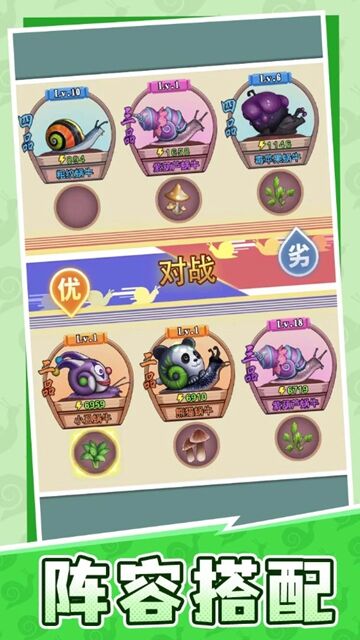3. 蜗牛种类丰富,涵盖草系、石系、水系等多种属性,每种蜗牛都有专属外观和技能,捕捉过程充满随机性,收集爱好者可尽情解锁全部蜗牛。
