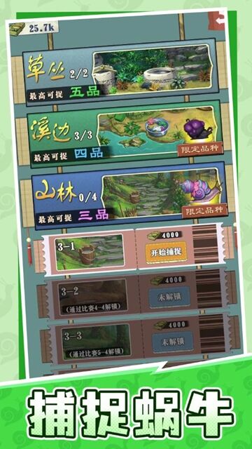 1. 玩家将以蜗牛训练师的身份开启冒险,核心玩法围绕蜗牛的捕捉、合成、培养与闯关展开,整体画风清新萌系,场景丰富多样,每一处场景都有专属的蜗牛种类。