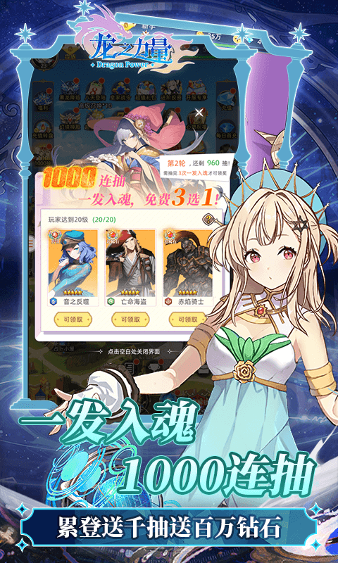 1、永久无限制0.1折版,上线送千抽! 2、开局直升V8,送海量福利! 3、登陆送百万钻石,无限真充天天领! 4、萌新福利,累登送百抽天天白嫖抽卡! 5、首充六倍,续充三倍!