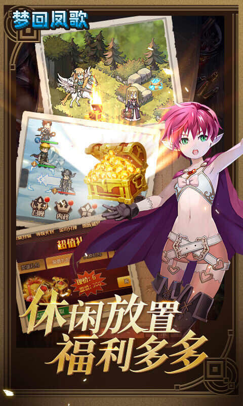 《梦回凤歌》是一款高度还原的,集挂机、卡牌于一体的H5游戏,无需下载即可轻松玩转历代人气主角,独创的战棋挂机玩法必将带给你不一样的挂机体验。 新潮的即时卡牌战斗,很赞很炫酷的人物立绘,让人耳朵怀孕的游戏配音,没错,这是一个关于英雄王的故事。 玩家在游戏中扮演英雄王的角色,掌控五张英雄卡牌,征战在勇者大陆上。灵活的排兵布阵,不同的阵容搭配展现出不同的战斗风格,玩家可根据不同的英雄卡牌搭配激活各自的羁绊效果,羁绊能为英雄增加额外的属性,让玩家更轻松征服勇者大陆。