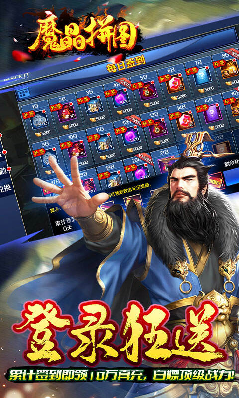 1、首登豪礼:SVIP1秒送+8888元宝+888万银两+88连抽 2、在线狂送:绝版武将「吕绮玲」、十万真充卡、限定称号「横空出世」 3、永续福利:豪华元宝卡叠加13重特权,在线挂机享超多资源 4、登录狂送:累计签到即领10万真充,白嫖顶级战力! 5、签到就赚:每日挂机轻松拿120抽+海量养成材料,养成无忧!