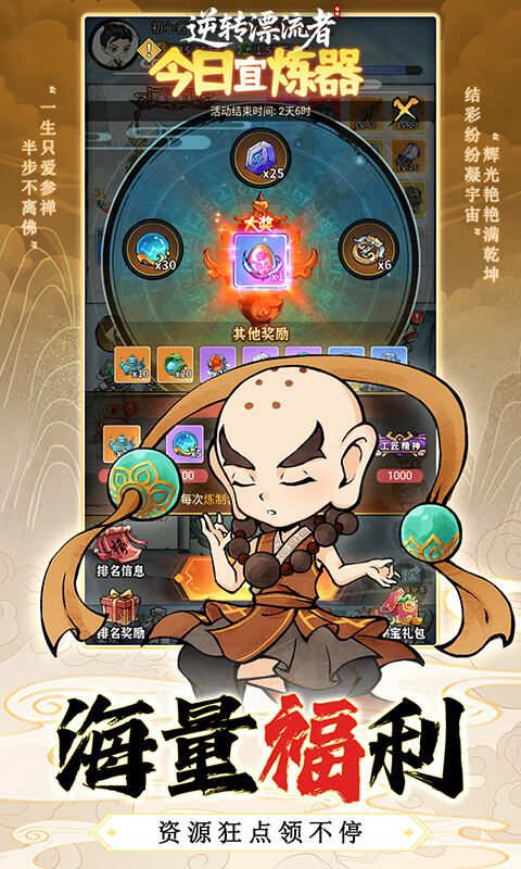 1、【0.1折】全场充值统统0.1折,648礼包仅需6.48元。 2、【日送代金】每日赠送3千元代金券,直充激活线上累充活动。 3、【进游福利】进游礼包再领3千元代金券,免费充值领到手软。 4、【连登狂领】7日登陆领极品精怪,千元灵石,助力鼎炉修炼。