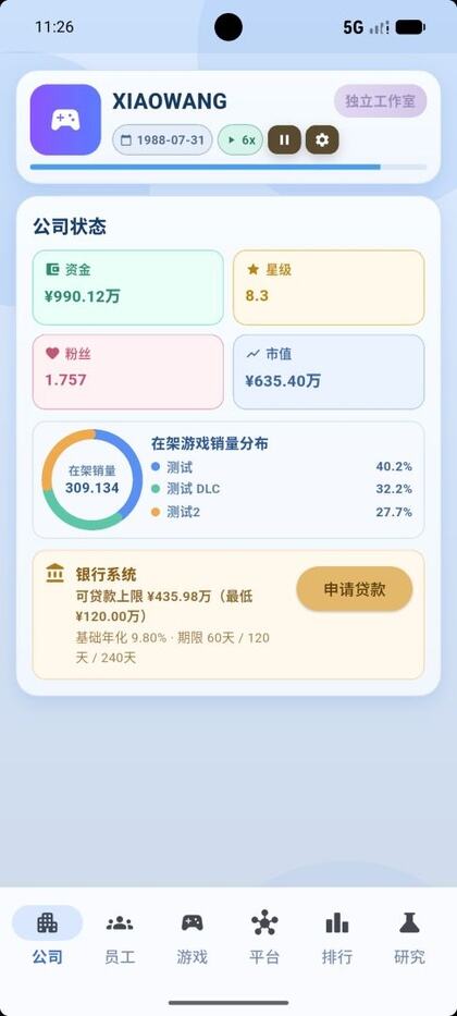 这是一款让你成为游戏制作公司老板的一款游戏,你需要在游戏中创建属于自己的游戏公司、招聘员工、开发游戏、合理规划资金以及管理员工。一起来完成你的游戏帝国吧。