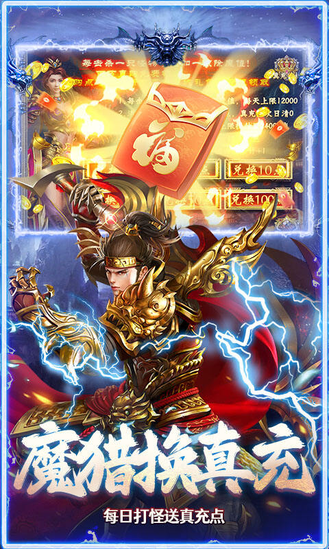 1、送充值卡:每天登录游戏送648充值卡 2、开局福利:开局送职业武器,开荒装备,开荒元宝,职业流派技能书 3、开局特权:开局送刀刀绿毒,自动拾取,范围拾取 4、百万真充:魔猎兑换真充值点,免费兑换游戏道具、时装、称号 5、超高爆率:所有道具全靠打,小怪也能爆神装 6、其他福利:七天登陆送“猛龙出江”限定时装 7、九流派系:三职业九流派探索更多玩法