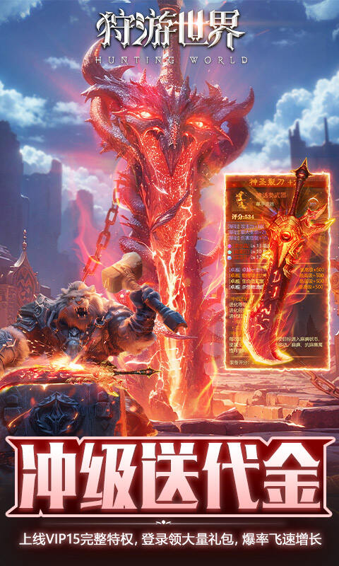 1、创角即送5000W金币,100W钻石、100W紫钻、坐骑、头像及各种进阶道具*999 2、冲级即送代金券(通票),可购买各种礼包 3、在线就送代金券,648代金券天天登录领 4、爽快打金,混沌神器、地狱坐骑、圣武器、圣诗之翼打金即可免费获取 5、上线送VIP15,完整VIP特权,登录大量领取VIP礼包 6、百倍爆率嗨翻全场,完成任务提升爆率等级,爆率飞速增长,最高可达1000% 7、天天活跃送神充,每日可兑换钻石