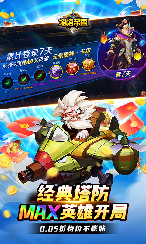 《塔塔帝国(0.05折塔防守卫巅峰)》是一款殿堂级3D欧美风的“英雄策略塔防”手游,是一款满足你对英雄所有想象的塔防游戏。游戏讲述来自不同地方的英雄团结作战,在领主大人您的指挥下,抵御黑暗入侵,保卫家园的冒险故事。精美酷炫的英雄外形和技能特效能给您带来王者级的塔防战斗体验。强大趣味的RPG养成系统,多维度的技能释放策略,酷炫的全屏大招能给您带来燃尽十足的战斗快感!游戏同时还拥有数十种创新玩法,如“随机关卡、无尽回廊、套装技能、地形机关、巅峰赛”等,满足你对塔防游戏的一切想象!