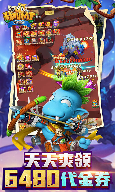 1、上线送极品SSR英雄-馒头儿、3280元充值卡、绝版称号、海量装备抽奖券 2、全新6480免费版来袭!每日可领取一张可拆分6480平台代金券,放肆充值! 3、每天日常可领648元充值卡,每月签到最高可得1804代金券! 4、野怪首领奖励爆率提升十倍,打野怪、首领即可爆出大量充值卡! 5、英雄降临7天任务送满星顶级UR英雄,每期UR英雄奖励各不相同,轻松集齐喜爱角色! 6、限时进阶来袭,完成活跃领取海量战骑进阶道具,实现战力飞涨! 7、boss奖励大升级!装备爆率极高、能爆大量顶级幻化,海量抽奖券,炫酷外显任你搭配 8、开服狂欢完成挑战即送超级战力【地狱咆哮】【伐木基】【火男】,战力达标领取高级天使【恋爱天使】,通关更能获得UR【机动羽翼】,全民冲等级直接白送SP【烈焰雄狮】! 9、女王赐福活动,天天挑战即送大量代金券! 10、神树祈愿,使用少量钻石参与抽奖即可有机会领取大量奖励,各式提升道具、UR级碎片,更有机会抽取顶级UR船长!激活战力暴涨7000000+! 11、功能预告伴随玩家成长,送出大量钻石金币! 12、零元购活动开启,0花费领取超强神装,更有大量豪礼抢不停! 13、战力转盘来袭,提升战力抽取大量好礼,更有SSR魅影战衣免费抽! 14、关卡投资、召唤投资、英雄投资、战骑投资开启,在对应系统完成进度即可领取对应系统的提升奖励 15、上线完成主线任务或悬赏任务即可领取大量抽奖券,单日抽奖可达1000+,UR角色抽到爽!