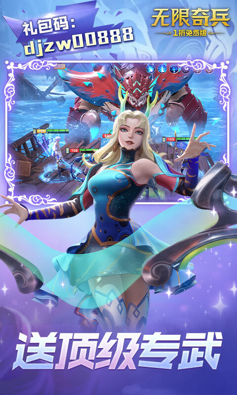 1、全场1折,活动随便买 2、天天送充值,每日免费代金券 3、送强力英雄梅芙,礼包码免费领! 4、送满星英雄,送经典满星,充值比例1:10 5、每天白嫖海量货币,良心运营。 6、英雄快速升星 极速培养版本。 7、线下充值返利,奖励拿到手抽筋。线下活动礼包,让你一步登顶! 8、线上线下活动双重出击不停歇,福利满满!