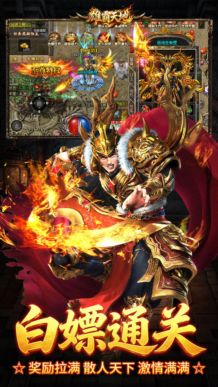 《雄霸天地》本游戏是一款打专属装备提升类游戏,每个地图都有每种不同的专属,打到一件好的专属就能起飞!游戏内置丰富的剧情探险内容,玩家可以在体验趣味剧情的同时不断提高战力,告别传统枯燥的无脑刷怪玩法!