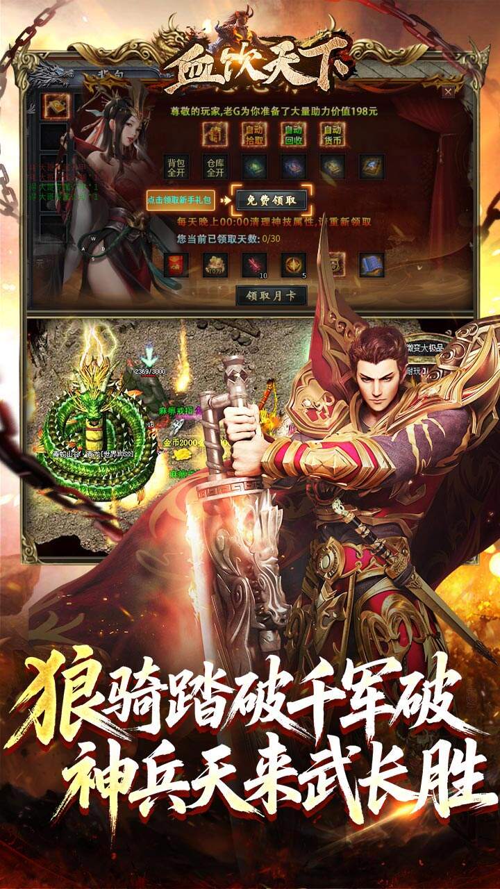《血饮天下》是一款经典复古传奇手游,散人追梦,超多装备!上线即送感恩有你礼包,自动拾取,自动回收,骑术技能,月卡礼包!!超值装备!上百张地图精彩纷呈,等你来战!游戏中还有热血沙巴克活动,集齐你的兄弟一起血战!超多奖励等你拿!